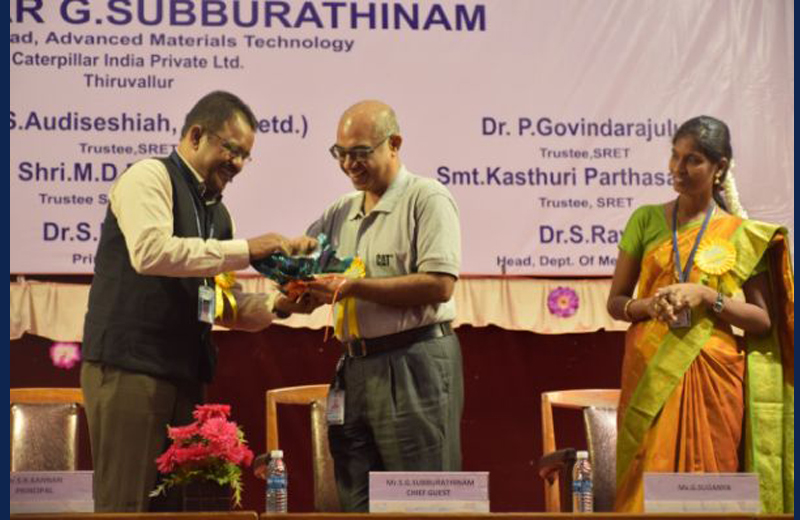 The inauguration of the National Level Conference in Emerging Trends in Mechanical Engineering is formally done by the Chief Guest Mr.Shankar G Subburathinam, Division Head, Advanced Materials Technology, Caterpillar India Pvt Ltd., on 27.09.2017 at Sri Ram Engineering College. Dr .S. Ravi, Head, Department of Mechanical Engineering Welcomed the gathering. Mrs.G.Suganya took the privilege to introduce the Chief Guest. Dr.G. Gopalakrishnan , Director honoured the Chief Guest. Dr .S. R. Kannan, Principal insisted the importance of attending Symposia. The Guest speaker detailed his speech on the employability skills required for a candidate to compete globally. The resource person furthered his speech before the audience by asking them to update their knowledge as per the changing trends of industry. Following the talk , Dr. R. Ravi Raja Malar Vannan, Assistant Professor, Department of Mechanical Engineering delivered the vote of thanks