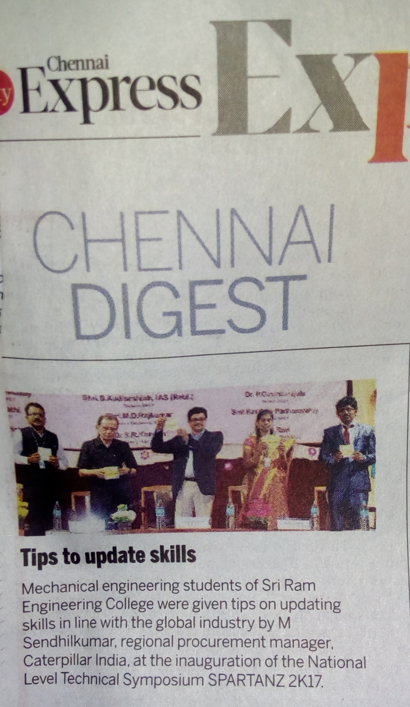 | 1 | Department of Mechanical Engineering Organized a National Level Technical Symposium "SPARTANZ-2K17" Indian Express on 11/09/2017. | Click Here To View |