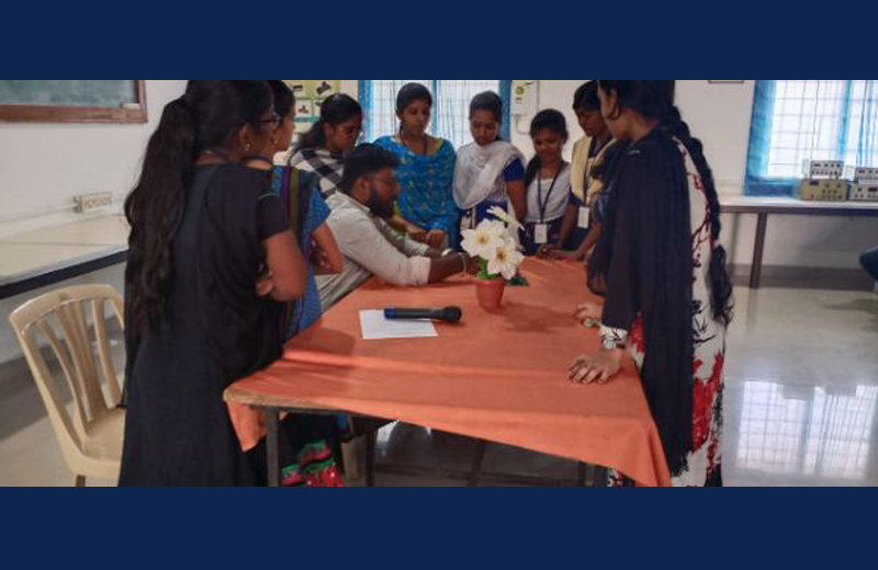 Photo Session of the Workshop: demo given by Mr. Sathish Kumar, Technical Head to the students