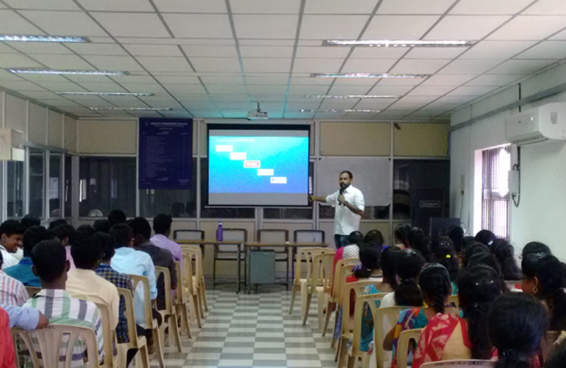 Placement and Training Cell organised a seminar “Software Industry Awareness” on 14.09.2018 at CISCO lab of CSE department for the benefit of the final year circuit branch students. Mr. Naresh Kumar (Alumni of our college CSE department 2001-2005 batch) working as a MTS-2 Software Engineer in M/S Paypal, Chennai has consented to be the chief guest for this seminar and addressed our students. Dr. P. Saravanan, Placement anad Training Officer & HoD/EEE given the welcome address. Dr. S. Manikandan, HoD/CSE & Vice Principal (Admin) honored our chief guest with shield and shawl. Our Chief Guest addressed our students.