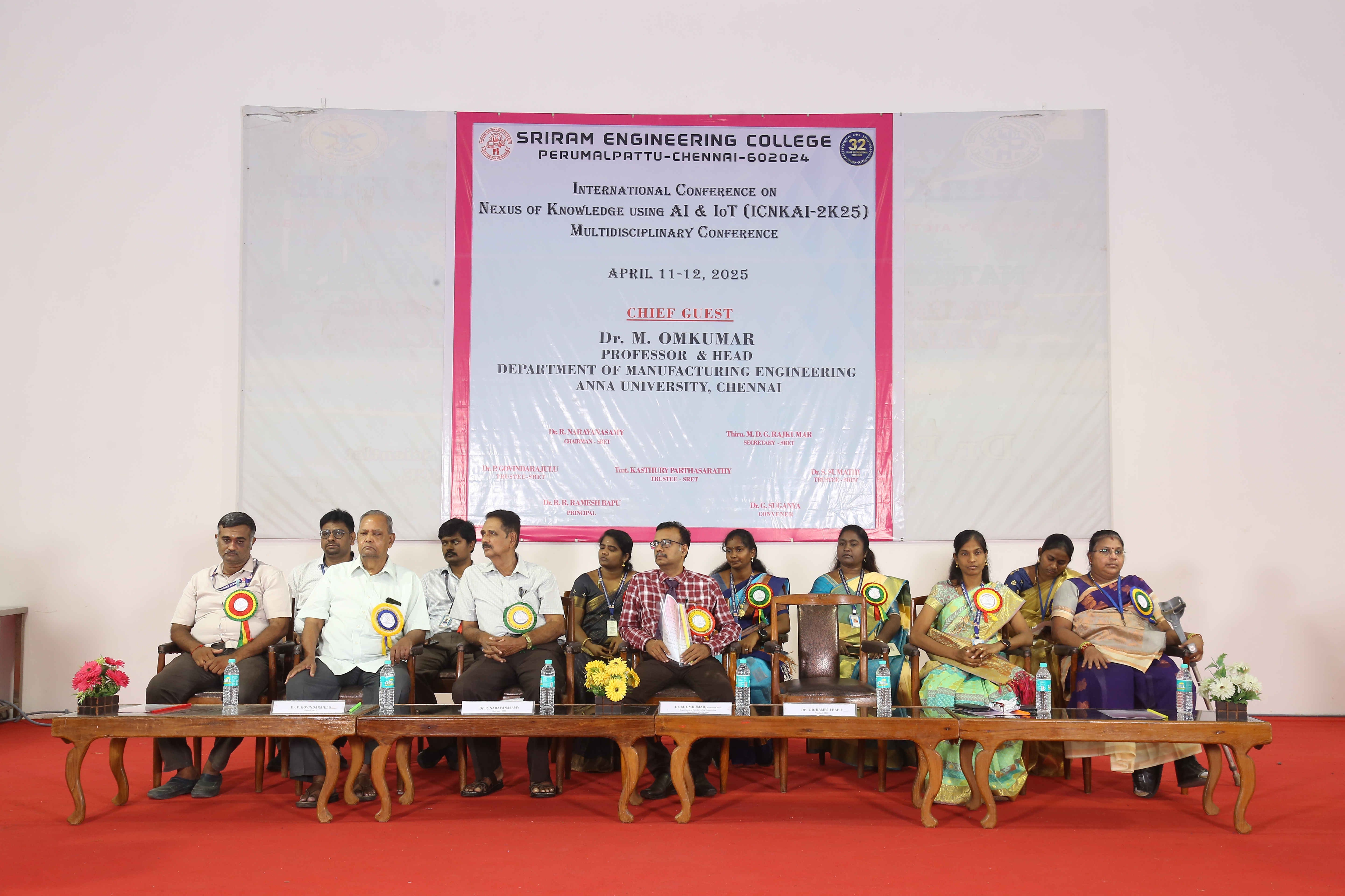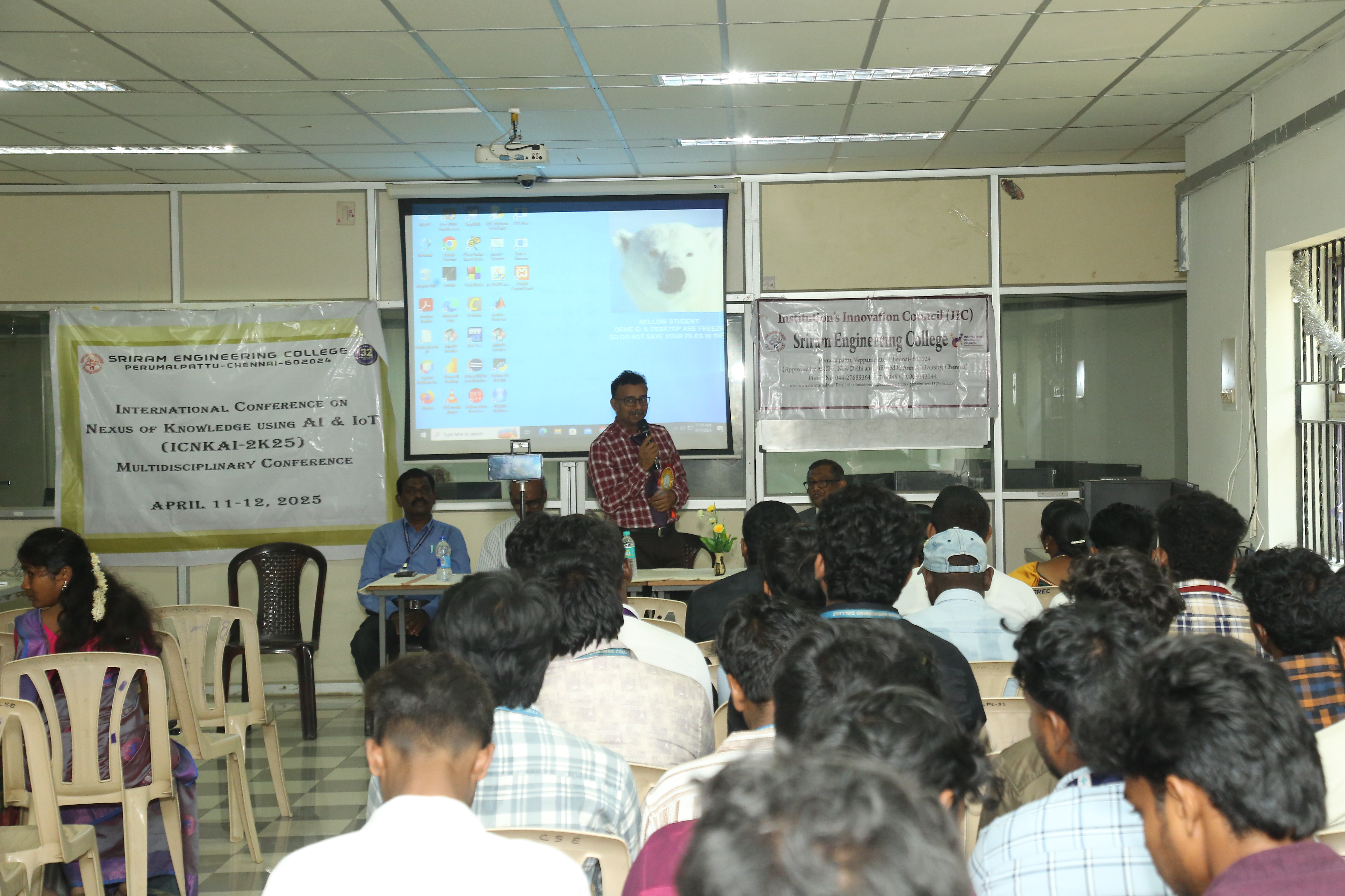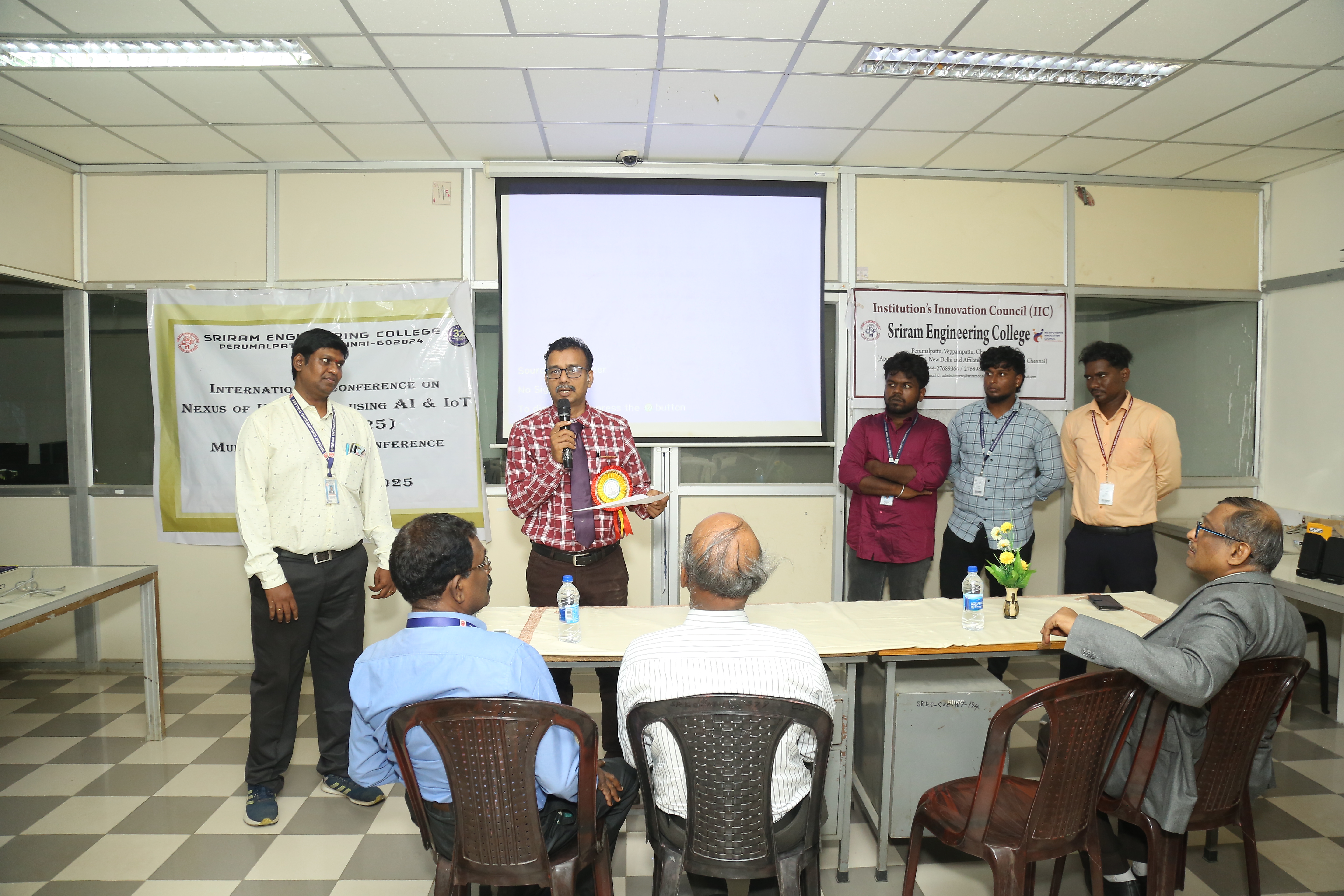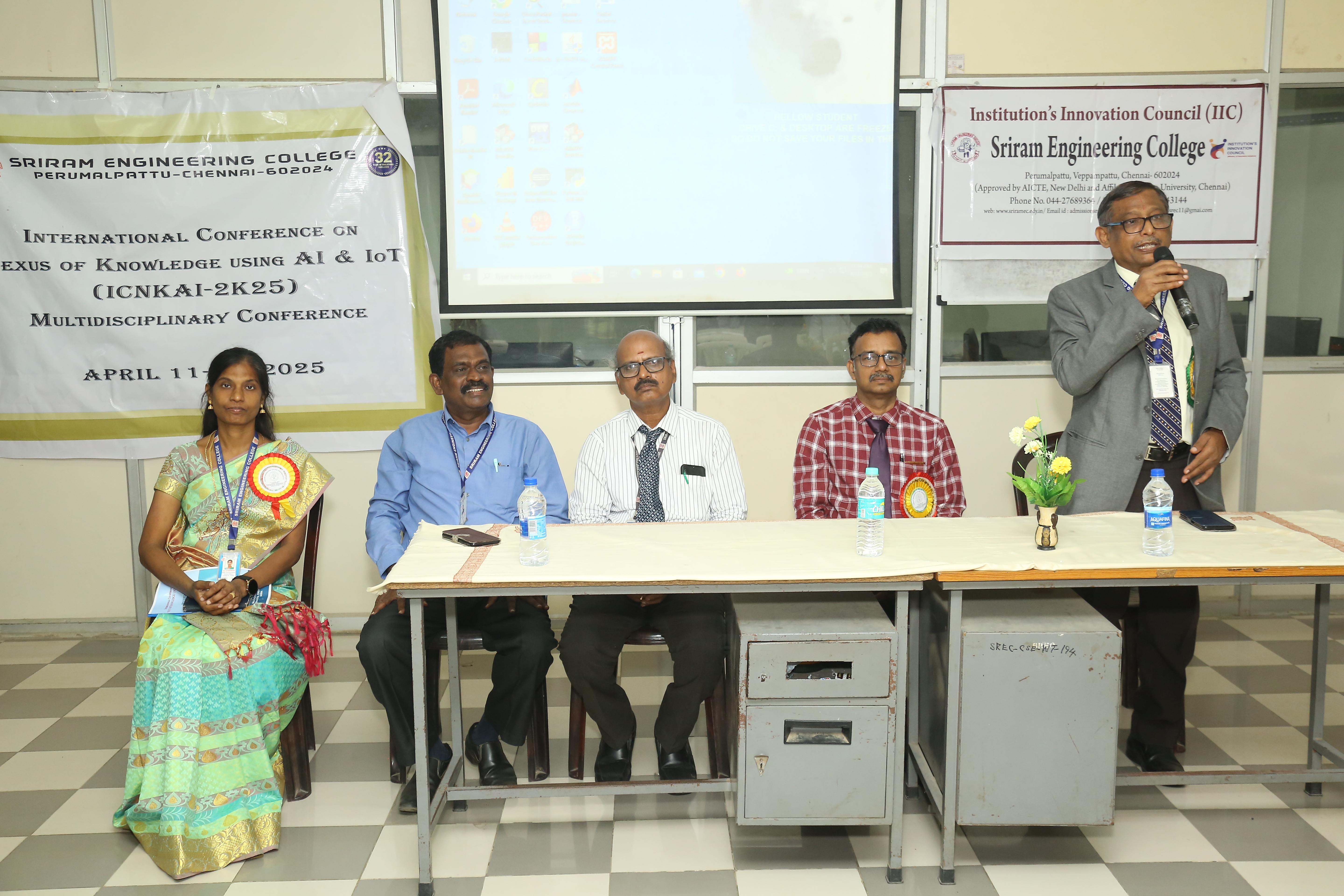 Sriram Engineering College successfully organized an International Conference on the Nexus of Knowledge Using AI & IoT (ICNKAI-2K25) on April 11, 2025. Nearly 188 students participated enthusiastically joining both online and offline sessions from various colleges across different institutions. The event was graced by Dr. M. Omkumar, Professor & Head, Department of Manufacturing Engineering, Anna University, Chennai, who was invited as a Chief Guest. His insights on the integration of Artificial Intelligence and the Internet of Things in modern engineering practices set a thought-provoking tone for the sessions that followed.