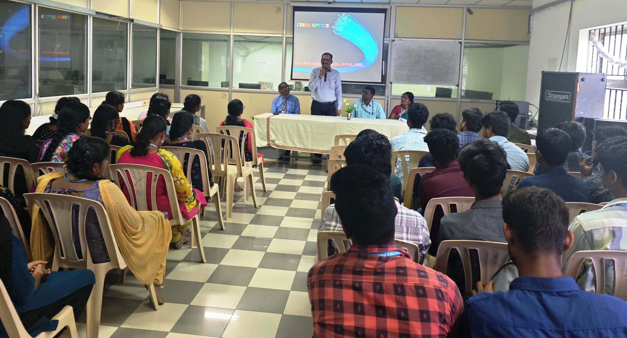 Sriram Engineering College organized a guest lecture on "An Introduction to Optical Fiber" at the CISCO Lab, CSE Block, for first-year students on 20th December 2024.