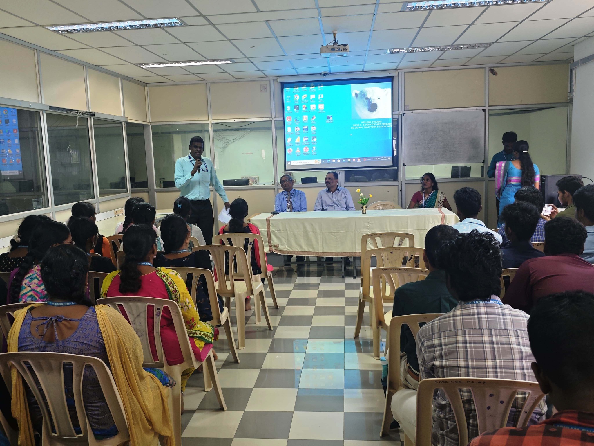 The session was conducted at the CSE Seminar Hall, SREC, exclusively for First-Year Students. Dr. Shanker delivered an inspiring and informative talk focusing on career planning, skill development, and strategies for success in today’s competitive job market. The lecture motivated students to enhance their technical and interpersonal skills to pursue highly rewarding career opportunities.