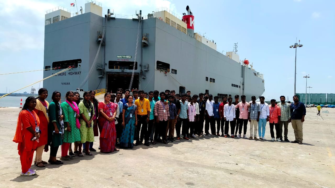 On 23rd September 2022, 45 students from ECE, EEE, Chemical, and Mechanical departments, accompanied by faculty members Mr. Nandakumar (Mech), Mr. Manigandan (Mech), Ms. Sowmiya (Chemical), and Dr. Geetha (ECE), visited Ennore Kamaraj Port for an industrial visit.