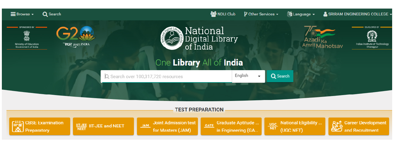 | 4 | NDLI | National Digital Library of India – Virtual repository of learning resources with a single – window search facility | https://ndl.iitkgp.ac.in |