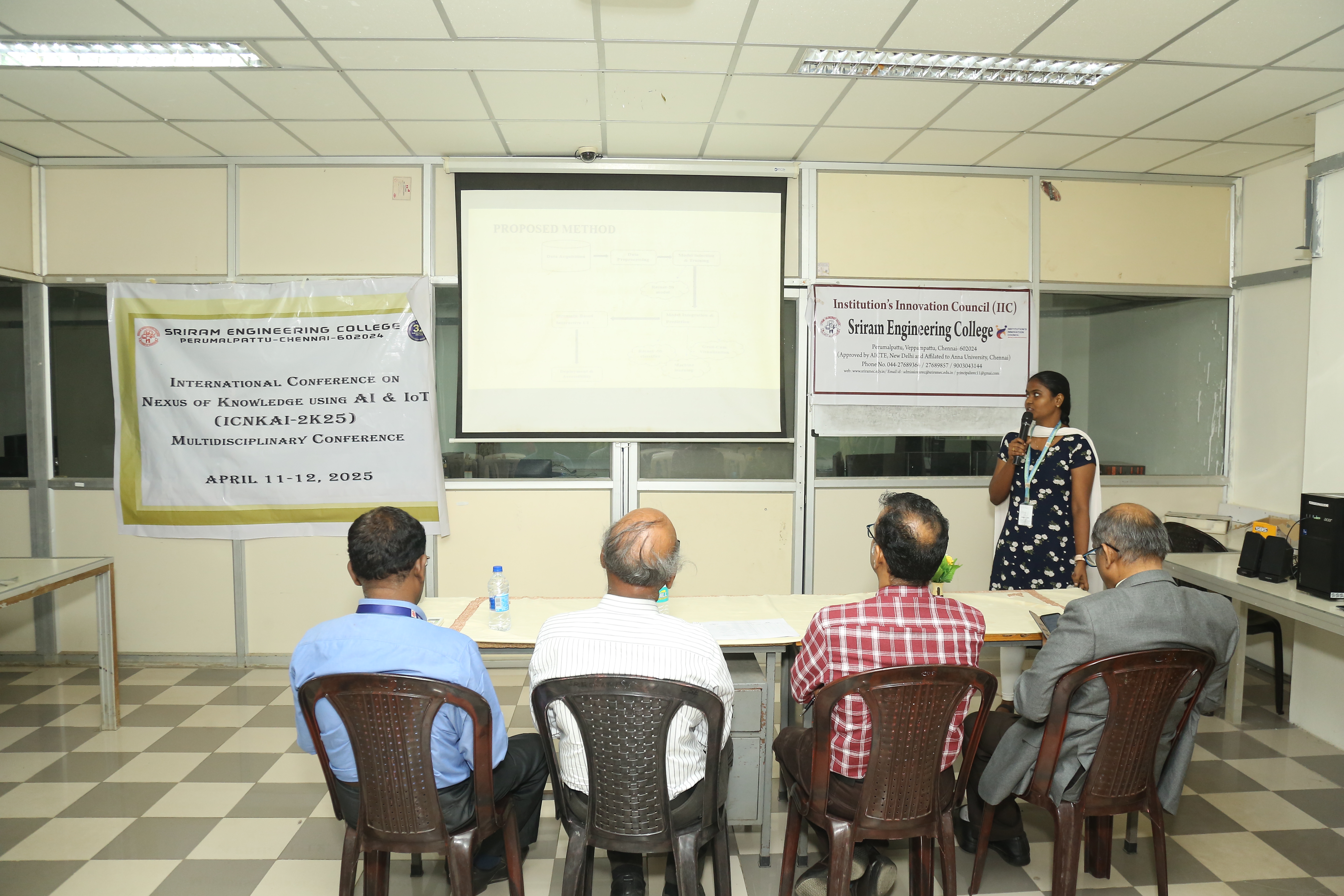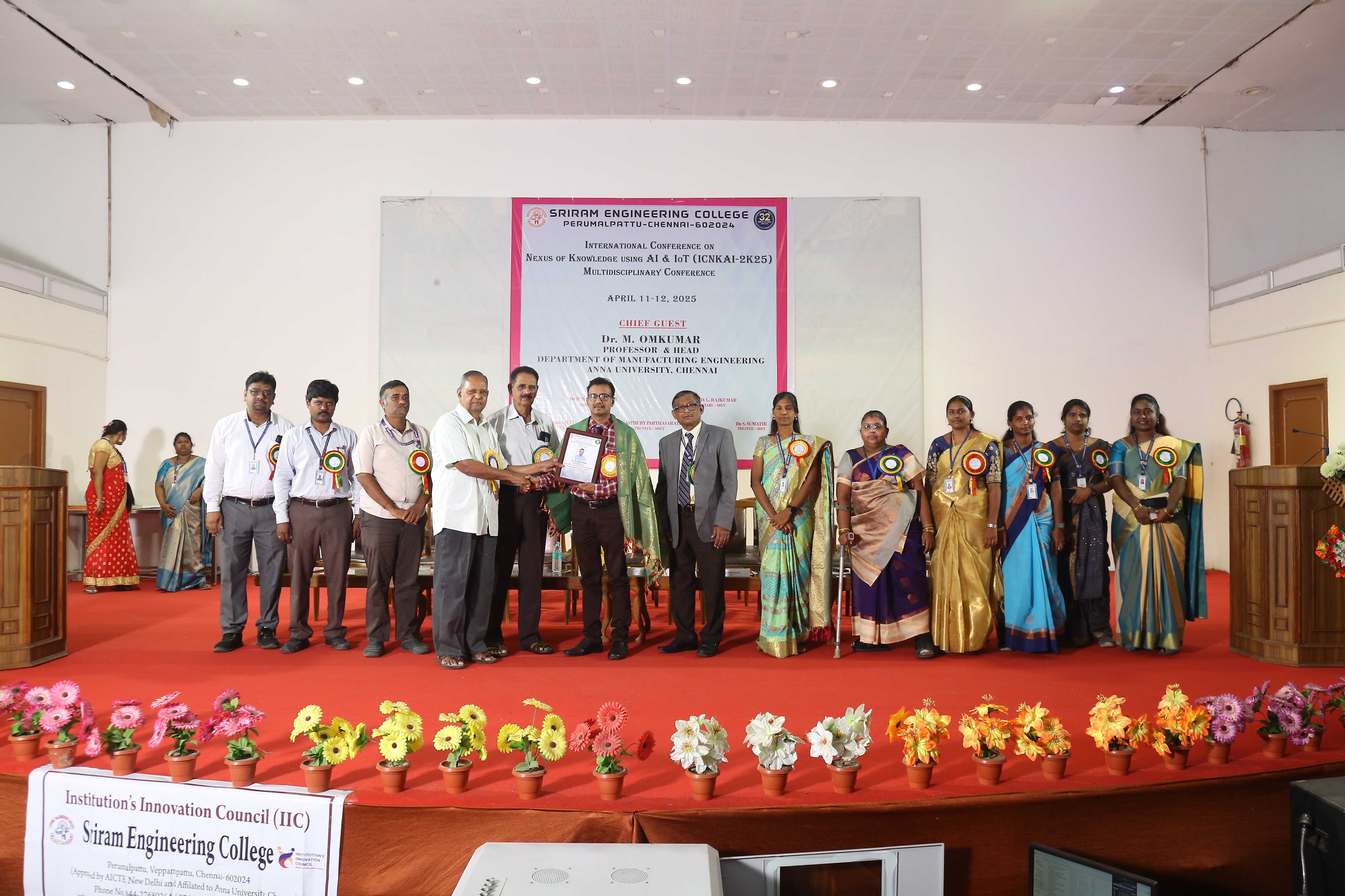 Sriram Engineering College successfully organized an International Conference on the Nexus of Knowledge Using AI & IoT (ICNKAI-2K25) on April 11, 2025. Nearly 188 students participated enthusiastically joining both online and offline sessions from various colleges across different institutions. The event was graced by Dr. M. Omkumar, Professor & Head, Department of Manufacturing Engineering, Anna University, Chennai, who was invited as a Chief Guest. His insights on the integration of Artificial Intelligence and the Internet of Things in modern engineering practices set a thought-provoking tone for the sessions that followed.