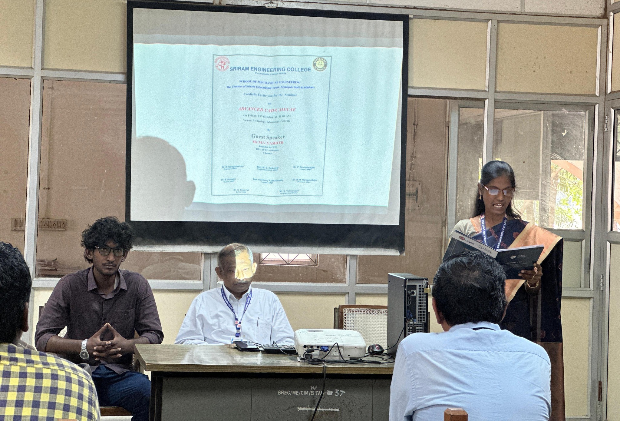 Sriram Engineering College School of Mechanical Engineering Organised a seminar on ADVANCED CAD/CAM/CAE on friday 25-10-2024 at 11.00 a.m in Metrology lab. Guest speaker : Mr. M.V.Yashith Founder & CEO DELAUTO Solutions, Chennai