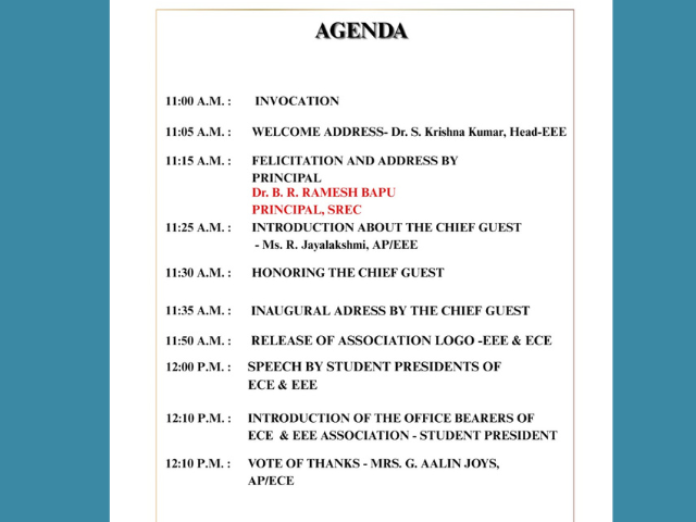 Sriram Engineering College School of Electrical & Electronics Engineering Organised a Seminar on Industrial Automation and Tools in Microwave lab ECE on 24-10-2024. Guest Speaker : Mr. Sujeeth Vishnu, Business Development Engineer, Mr. M. Karkuvel Application Engineer, AGIIT, Chennai. Venue : Microwave lab ECE Date : 24-10-2024, Time : 2.00 P.M.